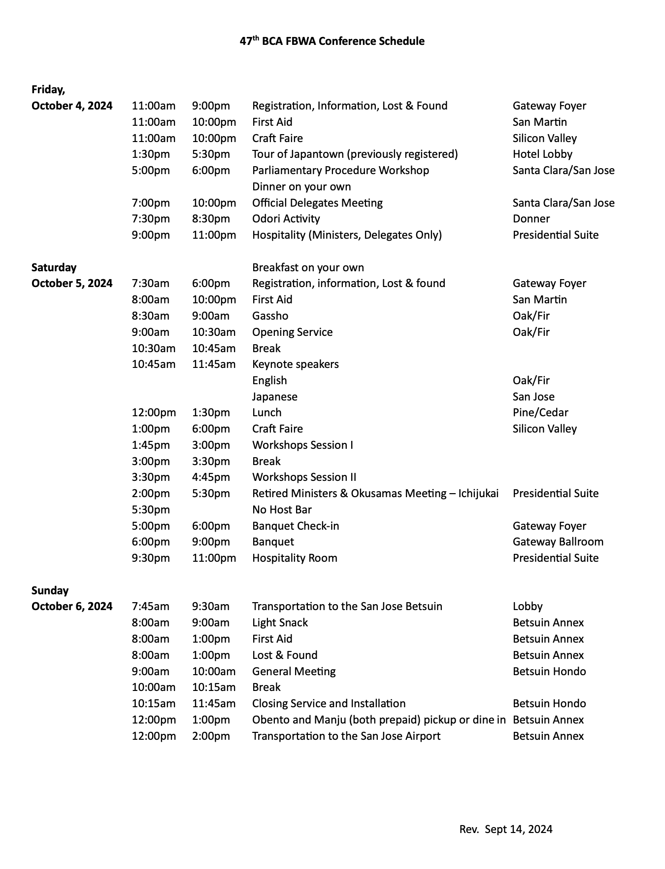 A printable soft copy of the FINAL schedule can be downloaded from the following link: